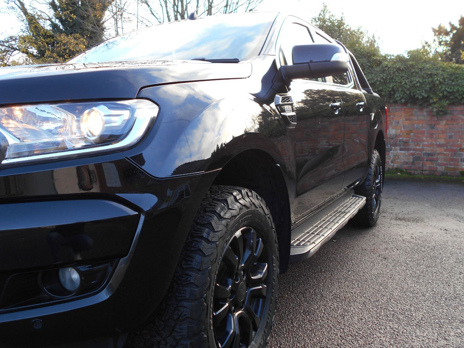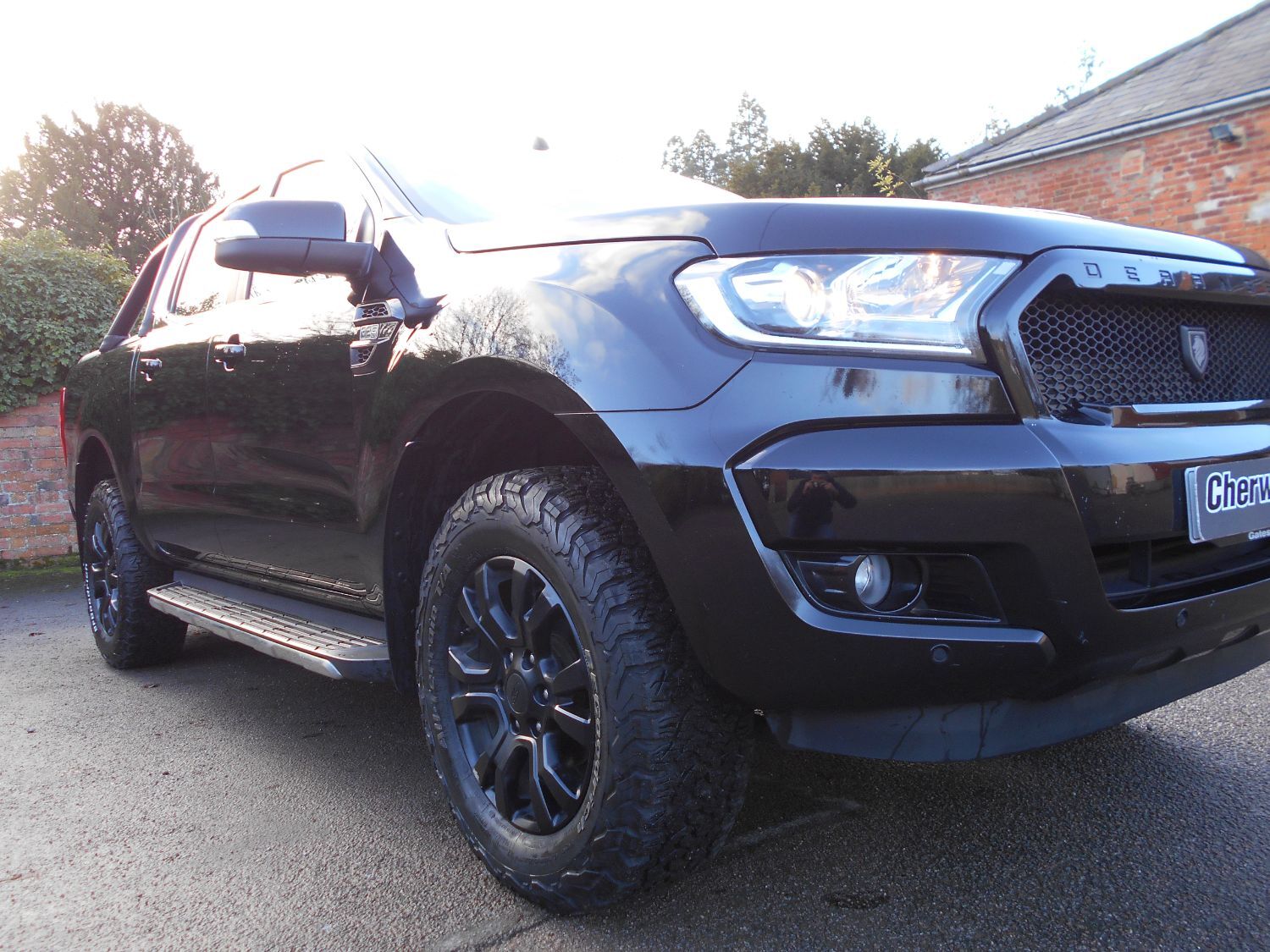 ***NO VAT*** *PART EX YOUR OLD VAN OR PICKUP* Presenting this 2018 Ford Ranger DERANGED Limited 4x4 Double Cab Pickup finished in Black. This vehicle is fitted with Ford's 3.2 TDCi Bi-Turbo 200ps Euro 6 Engine and 6 Speed Automatic Gearbox and has covered 99,000 miles and is supplied with a Full Service History Record. This pick-up benefits from all the internal spec you could possibly want in a truck; Sat Nav, Air Con Climate Control, Full Black Leather Trim, Reverse Camera, Ford Quickclear Heated Windscreen, Cruise Control, Sync 3 Media with Apple Car Play and Android Touchscreen System, DAB Radio, Electric Seats, Heated Seats, Electric/Heated/Folding Wing Mirrors, Multifunction Leather Steering Wheel, 3 Seat Rear Bench with Isofix Mountings. As you can see the outside has been professionally styled benefiting from some of the DERANGED extras such as a Bespoke Grill and Radiator Cowl, 17' Black Split Rim Alloys and Excellent BF Goodrich All Terrain Tyres, Rear Locking Load with Cargo Lining, Graduated Privacy Glass, Side Steps, Tow Bar with Electrics, Fully De-badged. 2WD and 4WD easy change options. MOT until 29-06-2023. Full Service History. 1 previous owner. In Stock and ready to go. NO VAT. PART EX - VANS AND PICKUPS ONLY