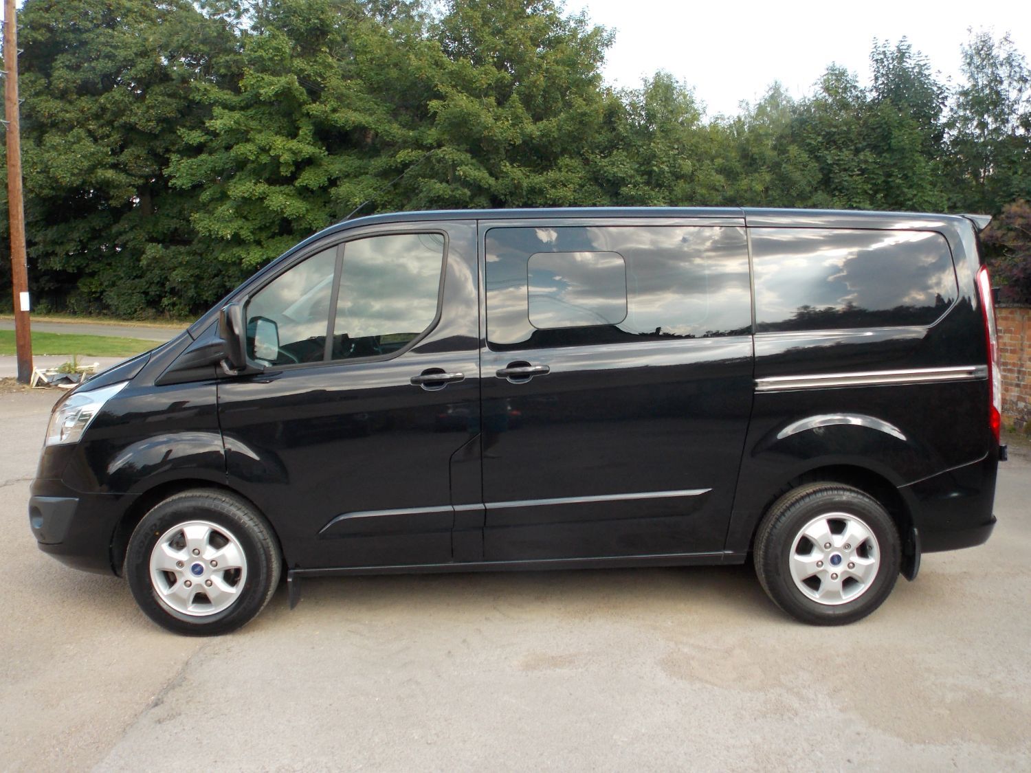 A STUNNING AND RARE PANTHER BLACK 2015 (65 PLATE - ON PRIVATE PLATE) FORD TRANSIT CUSTOM SHORT WHEEL BASE CREW-CAB LIMITED WITH ONLY 49,000 MILES. MOST DESIRABLE 155bhp ENGINE. A VAN FILLED WITH HUGE SPEC AND EXTRAS INCLUDING; SATELLITE NAVIGATION, CRUISE CONTROL, HEATED FRON SEATS, FRONT AND REAR PARKING SENSORS, ALLOY WHEELS, AIR CONDITIONING, ELECTRIC WINDOWS, HEATED FRONT SCREEN, ELECTRIC AND HEATED MIRRORS, SYNC MEDIA SYSTEM INCLUDING BLUETOOTH PHONE CONNECTIVITY, DAB RADIO, USB AND BLUETOOTH MUSIC PLAYBACK, TWIN SIDE LOADING DOORS, SPOILER, 6 SPEED GEARBOX, FACTORY FITTED BULKHEAD, MULTIFUNCTION LEATHER STEERING WHEEL, FRONT FOG LIGHTS, REAR SOLID BARN DOORS, LINED IN THE REAR, ARM REST ON DRIVERS SEAT. COMES WITH ORIGINAL BOOK PACKS, SERVICE BOOK. IN PANTHER BLACK COLOUR. LOOKS AND DRIVES GREAT. BODYWORK IS LOVELY AND INSIDE THE CAB IS GREAT. A PROFESSIONAL LOOKING VAN THAT IS SPACIOUS, PRACTICAL AND VERSATILE. PERFORMS GREAT WITH 2.2 LITRE 155BHP DIESEL ENGINE AND ACHIEVES EXCELLENT ECONOMY OF APPROX 40MPG. PART EXCHANGE YOUR OLD VAN, CAN DELIVER NATIONWIDE - PLEASE ENQUIRE, YOU WILL NOT FIND ANOTHER CREW CAB VAN WITH THIS LOW MILEAGE, HIGH SPEC, FULL HISTORY AND EXCELLENT CONDITION AND OWNERSHIP