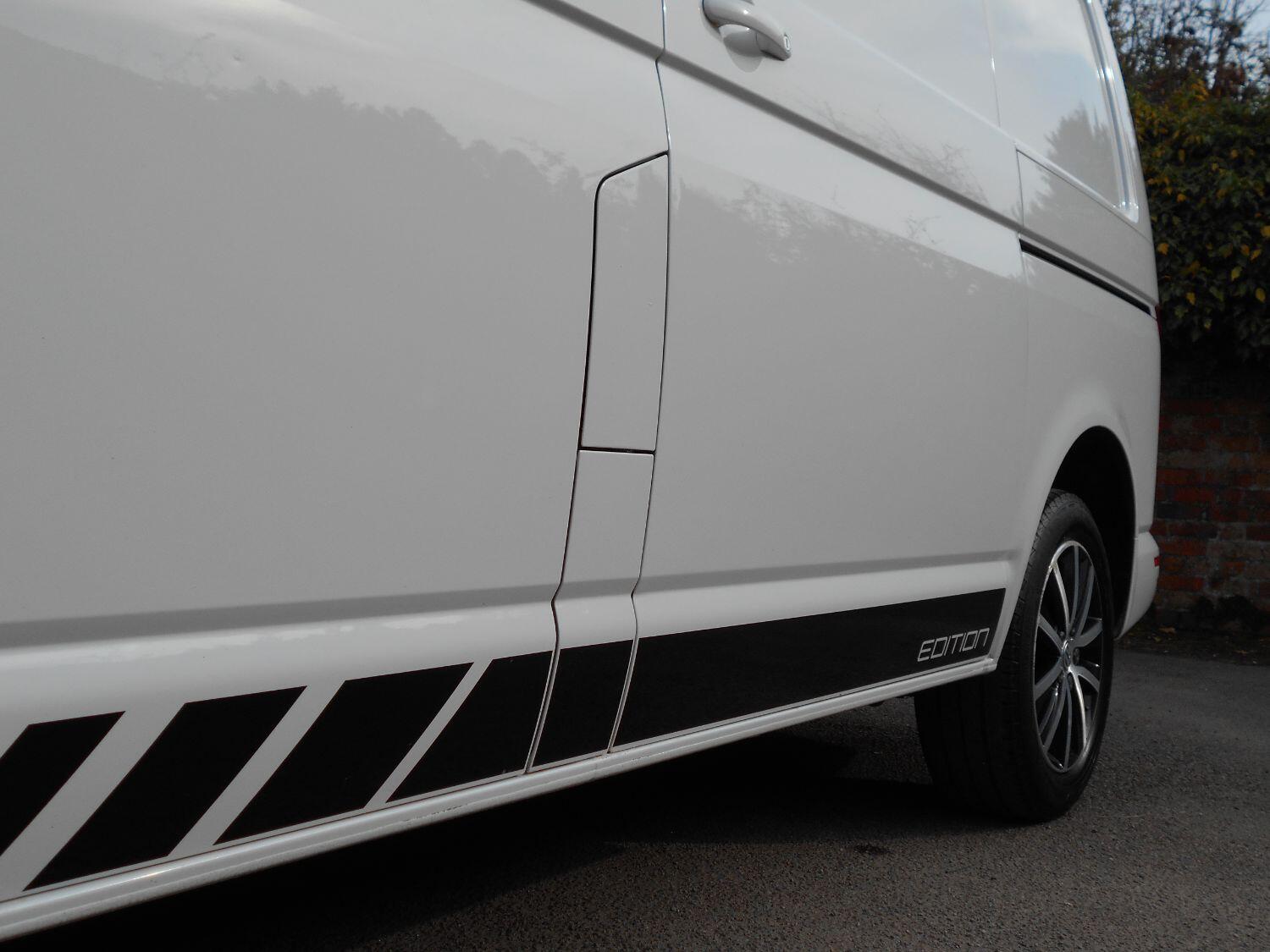 *LIMITED EDITION ULTRA RARE SPEC* * *STUNNING CONDITION* Your chance to own a VW Transporter 2.0TDi 150bhp T30 EDITION SWB High Spec in white with Full Service History. 107,000 miles. Incredible high specification including the following; Satellite Navigation, Air Conditioning, Adaptive Cruise Control, Reversing Camera, Heated Seats, Rear Parking Sensors, Desirable 150bhp TDi Engine, Soft Close Rear and Side loading doors, VW Colour Coded bumpers and also blacked out Roof and Wing Mirrors along with 'Edition' Decals, Alloy Wheels, Touchscreen VW Audio Media System with Apple Car Play & Bluetooth, Leather Steering Wheel, Drivers Captain Chair with arm rests, Electric Windows and Electric Folding Wing Mirrors, Rear Tailgate door, Front Fog Lights, VW Cargo Lined floor. This vehicle comes with Spare Remote Central Locking Keys, Full Service History Print and has only had 1 owner from new. Looks and drives great, the bodywork is in great condition and inside the cab is very clean. A professional looking van that is both spacious, practical and versatile - ideal for work or pleasure and could easily double as a day van or camper conversion. Performs great with desirable 150bhp 2.0 Litre Euro 6 engine with 6-Speed Manual Gearbox and achieves great economy of approx. 40mpg. Ready to driveway today. VEHICLE IS PLUS VAT. VIEWING BY APPOINTMENT ONLY. FINANCE AVAILABLE THROUGH CLOSE BROTHERS. PART EXCHANGE WELCOME (VANS/PICKUPS ONLY). NATIONWIDE DELIVERY AVAILABLE